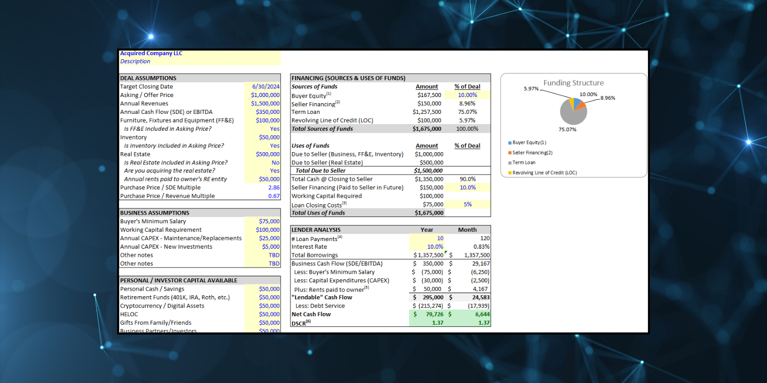 Analyze down payments, assess fundability for SBA loans, and secure the best financing options for your acquisition.